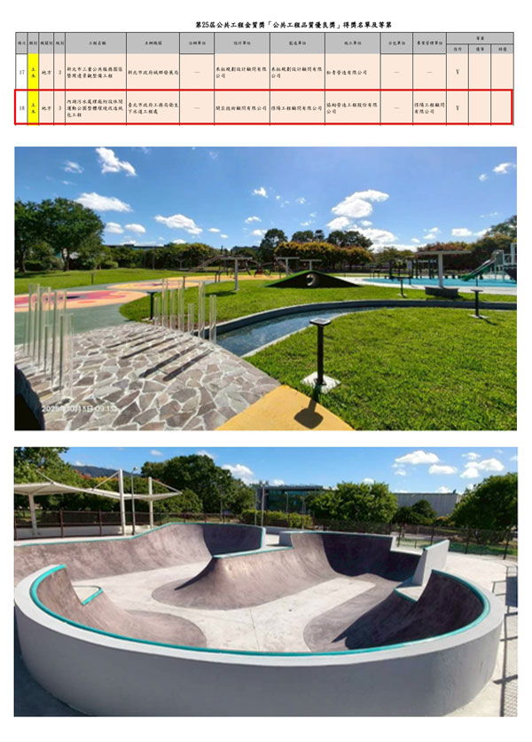 獲獎:行政院公共工程委員會 - 第25屆公共工程金質獎 佳作